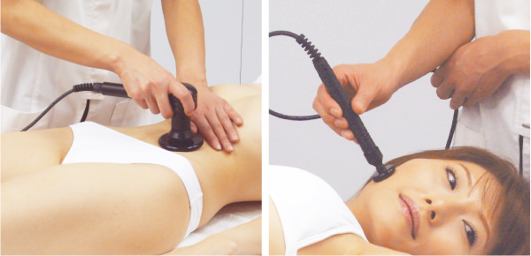 - 「ラジオ波」をより効果的に!溶けた脂肪を「低周波」で燃焼します。