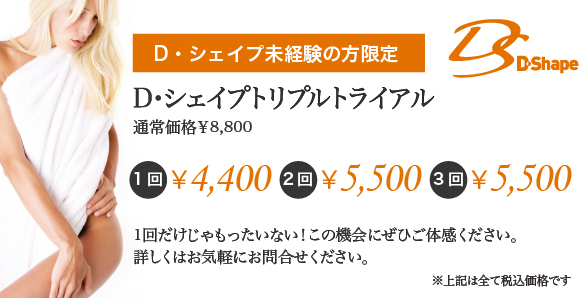ボディからフェイシャルまで、様々な部位のトリートメントがオールマイティに可能なD・シェイプ。脂肪の減少とハリのある肌を実現するRF(ラジオ波)は、下腹部専用の「Dモード」と筋肉運動によるスリミングを目的とした「Sモード」、そしてこれらを同時に行う「DSモード」という3つのEMS(低周波)を備え、気になる部分だけをサイズダウンして皮膚を引き締めてハリを出す、その両方が同時に行えることでメリハリのある理想的なボディーに!